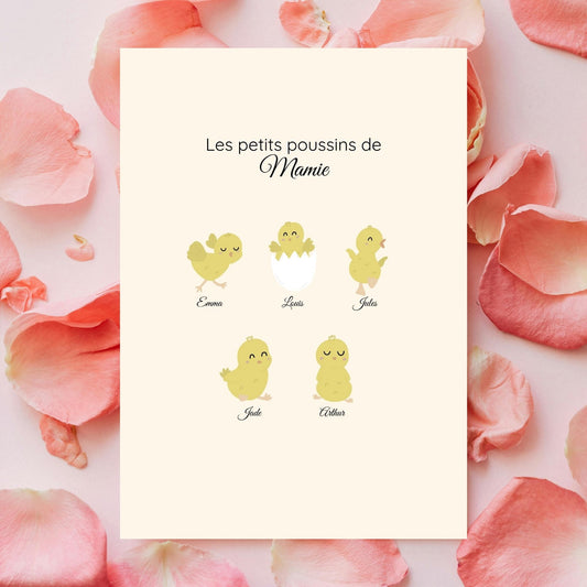 Affiche PDF à télécharger, personnalisée les petits poussins de mamie